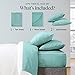 Full-size set in Bright Aqua includes (1) 81 x 96-inch flat sheet, (1) 55 x 75 x 14-inch fitted sheet, and (2) 20 x 30-inch pillowcases