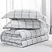 Navy Plaid Comforter Set: Cotton Surface with Bionic Fiber Insert, 200 thread count. Comfortable against the skin, soft to the touch.