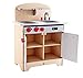 Fully equipped gourmet kitchen: This wooden play kitchen has all a little cook needs with a sink, stove, oven with window, cabinet, spice shelf, and turn able clicking knobs
