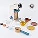 Super cute wooden play kitchen accessories: 13 pieces in all! This kids wooden toys including 1 Coffee machine 1 Filter 2 Cups 2 Saucer 2 Spoons 1 Milk 4 Coffee pods.