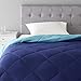 Reversible, lightweight comforter is navy blue on one side and sky blue on the other