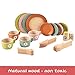 DURABLE QUALITY - This kitchenware play set are all made of solid hard wood, with water base paint, no color fading, no smell. All round edge, no worry about hurting during play. the NO 1 priority is safety.