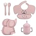 ✔️ PERFECT BABY FEEDING SET: 11 Pcs feeding set Includes everything you need to get started with solid food for toddlers, it comes with 1 Bowl, 1 Plate, 2 Cups, 2 Spoons, 2 Forks, 1 Placemat and 2 Straws. This high-quality solid color baby feeding supplies set comes in a box and can be a perfect baby registry gift for infants and kids.