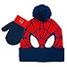 Classic Spider-Man Toddler Boy Winter Hat, Toddler Gloves Set! A fun way to keep little kids warm when it's time to enjoy the winter weather this pull-over toddler beanie and matching toddler snow gloves feature everyone's favorite New York City wall crawler, the Amazing Spider-Man.