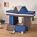 Various Furniture Shapes: Kids couch comes with 7 modular pieces that can be transformed into countless shapes for rest or play. Kid couch creates a secret club in a cozy hideaway fort or flips open a luxurious throne chair for your toy kingdom. Kids sofa can be a chair, fort, tunnel, mat, couch, sofa, or simply anything you want it to be. Child can combine play couch for multiple fun.