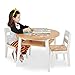 Easy-to-assemble 2-tone sturdy wooden round table and 2 matching wooden chairs sized for kids