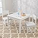 DIMENSIONS AND CARE: Table measures 26.4" W x 18.5" D x 15.5" H, chairs measure 12" L × 12" W × 12" H; set is sealed with a clear finish that’s easy to clean with mild soap, water, and soft towel