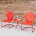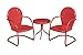 The patio bistro set is made up of two c-spring motion chairs, a side table, and a color scheme that is inspired by vintage red from childhood.