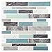 Stick on Tiles for Backsplash Kitchen:Marble-look matte mixed with aluminum chips,10"W x12.1"Lx3.2mm thick individual mosaic covers 3.44sqft/5sheet,6.78sqft/10sheets