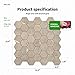 Premium Honeycomb Peel and Stick Tile:Individual tile 1.81",sheet size 10"W x11.89"Lx3.0mm thick.Each pack covers 3.61sqft/5sheet,7.22sqft/10sheets, 3D backsplash tiles,with tight joints,two sheets are good interlocking.