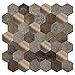 HEXAGON STICK ON TILE BACKSPLASH-3mm thickness,made of textured resin mixed with aluminum brushed, total 90chips mounted by hand tightly each sheet, durable & realistic mosaic tiles,matte & glossy combination