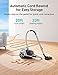 COMPACT DESIGN: Created to be small and powerful, this household vacuum is easy to maneuver and store. Features an extremely convenient height adjustment and storage thanks to the comfortable telescopic wand and automatic cord rewind.