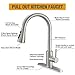 EASY TO OPERATE: Convenient Single-Lever design for effortless flow control,swivels 360° for a broad range of motion in and around the sink,updated mechanical retraction system make pull down sprayer head always sit into original place after use.