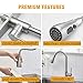 THREE-FUNCTION SPRAYER HEAD: Kitchen sink faucet setting (STREAM, SPRAY, PAUSE), stream for filling water, spray for rinsing, pause for avoiding splashing in multitask mode, providing stable water pressure, makes cleanup easier.