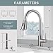 Easy to install- The kitchen faucet with sprayer comes with all the parts needed. A DIY installation for this water faucet can be finished within 20 minutes. You will be amazed at this super easy-installed stainless kitchen faucet. Deck plate included, one hole kitchen faucet or 3 hole kitchen faucet installation as you like.