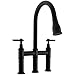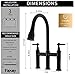 【BRIDGE KITCHEN FAUCET DESIGN】: Horizontal bar connects hot and cold water handles to the faucet spout for a bold classically-inspired look. PULL DOWN SPRAYER provides flexibility for up-close tasks and extended reach all around the sink; eliminating the need for a separate side sprayer.
