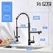 ENJOY GREAT FUNCTIONALITY: With a one-function pull down kitchen faucet sprayer and a separate pot filler spout, this pull out faucet allows you to handle all types of tasks. The spray head and stream spout can swivel around 360 degrees for full sink access, and the pre rinse black kitchen faucet ensures high pressure while still saving on water.
