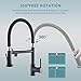 👍Practical kitchen faucet for sink-- Our kitchen faucets sprayer features two outlets with separated settings; pull-down sprayer provides a powerful splash-free aerated stream for washing while the spout offers soft water for filing; two outlets can be rotated separately and meet the usage need of two people at the same time.