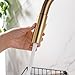 360° swivel spout allows full rotation in and around sink Premium coated kitchen faucet finish resists rust, corrosion, and tarnish. Brushed Gold finished