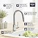 18-INCH HEIGHT: Optimized for residential use, the commercial style faucet fits underneath almost any kitchen cabinet – 2-FUNCTION PULL-DOWN SPRAYHEAD with Reach technology offers maximum flexibility all around the sink – INDUSTRIAL OPEN-COIL spout creates a distinctive professional look – FAUCET SWIVELS 180° for maximum sink access – SINGLE-HOLE INSTALLATION with pre-attached water lines and Quick Connect sprayer hose for easy installation