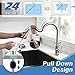 【KITCHEN FAUCET FEATURES】Kitchen faucet 23-inch extended pull-out design covers the entire sink,Three water functions on kitchen faucet (spray / flow / pause) It can meet a variety of cleaning tasks, and can be suspended immediately in a variety of task modes to avoid splashing, helping you get rid of messy