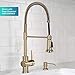 HEAVY-DUTY CONSTRUCTION with brass body and nylon water supply lines – PULL-DOWN SPRAYHEAD with Reach Technology for maximum maneuverability – EASY-RETRACT HOSE with swivel adapter for a full range of motion so you can flex, pivot, and reach around the sink – WEAR-RESISTANT FINISH not prone to corrosion, fading, or tarnishing – NOTE: The appearance of GOLD FINISH can vary depending on kitchen lighting. Warmer or cooler lighting can affect the way your faucet looks when installed, and may differ from the images shown – Also available in Spot Free Stainless Steel Finish for easy maintenance