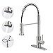 The stylish spring faucet design is suitable for kitchen sinks or granite countertops.Quick Connect hose can help you install by yourself with 15mins, deck plate can fit 1 hole and 3 hole kitchen sink.