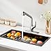 Pull Down Faucet for Kitchen Sink: 16.73” height Faucet, 8” Spout reach with 23 inch Pull out flexible hose, pull down sprayer, black stainless steel finish. single handle high arc kitchen faucet, making your kitchen room simple and fresh.