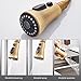 【PULL DOWN KITCHEN FAUCET】: This gold kitchen faucet works with flexible pull out hose and 360° swivel spout for easy access to any corner of a single or double bowl kitchen sink. Equipped with gravity system ensures that the hose automatically retracts into the spout after each use without messing up.
