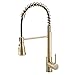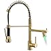 Professional-grade Design: This gold kitchen sink faucet features a high-end commercial style that emphasizes functionality and practicality. Its unique spring spray head design gives the product a modern industrial feel, and the pull-down spray head can rotate 360 degrees for daily kitchen tasks. gold kitchen faucet With both spray and stream modes, it adapts to various needs.