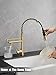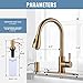 【Value for Money】Package includes a 16-inch tall kitchen faucet and a 17-OZ high capacity Soap Dispenser. Buy a set at once, saving you time and money, and make your kitchen style more uniform. They stand out with a luxurious Gold finish, will absolutely become an eye-catching highlight for the kitchen.