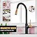 MAGNETIC DOCKING SPRAYER -- Magnetic Docking uses a powerful magnet to snap the pull out sprayer into place so it stays docked and the spray head will automatically retract after each use,doesn't drop over time like other kitchen faucets.