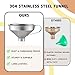 Healthy, Durable 18/8 Stainless Steel Funnel - The kitchen funnel set is made from food grade 18/8 stainless steel that not only gives the products a bright, clean finish, it also makes them durable through years of use, with no more concerning of easily denting or cracking with this funnel set, you can count on these funnels to deliver long-term performance and decades of convenient pouring.