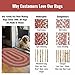 UNIQUE: Each rug has a unique characteristic as dyed cotton cuttings are woven randomly. Every rug gives a nice farmhouse, country, lodge look. Natural jute makes them look vintage and artisanal feel.