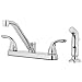 This two handle kitchen faucet with side spray will serve as the perfect stylish addition to your home. Featuring a polished chrome finish that offers a mirror-like, highly-reflective shine that reflects your personal style and complements a wide range of bath decor styles.