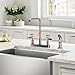💧【8 Inch Centerset Design】Modern 2-Handle temperature controlling,rotated forward 90°to turn on the H & C water. Kitchen faucets for sink 3 hole or 4 hole . High arc 360°swivel spout, which can easily move around the sink to make your kitchen cleaning working more easy.
