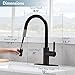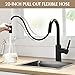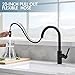 【We Feel Your Expectations Of Future】High quality ceramic cartridge black kitchen faucet with sprayer has passed 1000,000 cycle testing to ensure a stable and long-lasting service life, reliability is the biggest significance of kitchen faucet. 360 degree rotating pull out hose is more convenient to clean, 13.7" total height, 6.9" spout height, 6.7" spout reach