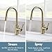【We Care About Your Experience】The integrated design of the arc makes the Brass kitchen sink faucet beautiful in appearance. The single-handle faucet can easily control the water temperature and flow rate. Equipped with gravity ball and magnetic force, the sprayer is always free to retract to the water outlet after each use.Superior anti-corrosion and anti-rust finish prevents dirt from sticking to the faucet surface