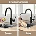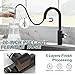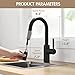 HEALTHY & RELIABLE: Lead-free stainless steel kitchen faucet, all parts meet cUPC standards; Odorless hoses; Ceramic cartridge allows for effortless changes in temperature and water flow, advanced Seal Technology reduces leak points; Steel sprayer head, more durable than plastic ones; Matte black painted, resist fingerprint, scratches and corrosion