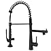 🍁COMMERCIAL-STYLE Kitchen Faucet is both flexible and functional, with a heavy-duty open coil spring spout for an industrial look.Pull-down faucets swivel 360 degrees for added convenience during everyday kitchen tasks. The kitchen faucets with pull down sprayer and a pot filler spout, they can be turned on at the same time.