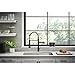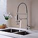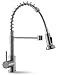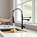 COMMERCIAL-STYLE FAUCET is both flexible and functional, with a heavy-duty open coil spring spout for an industrial look; HIGH-ARC SPOUT with flexible hose offers increased sprayer mobility with ample room for large pots and tall pitchers
