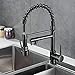 Dual Spouts kitchen sink faucet,Instead of fiddling around with a sprayer head, you get a fixed pot filler for stubborn messes. Black kitchen sink faucet Each nozzle has its control handle, and the pull-down has a clip to set it to hands-free. The lever prevents it from turning off, allowing you to rest your hand.