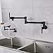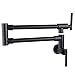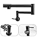 【PRACTICAL DESIGN】The black pot filler faucet wall mount features the convenience of two valve controls and an articulated arm that has a maximum reach of 17 inches. Plus, it folds out of the way when not in use, which saves kitchen space. The 360°rotating design makes it easy to fill large cooking vessels quickly wifout having to walk from the sink to the stove (Just remember to turn off both valves after use).