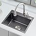 TOP MOUNT KITCHEN SINK One hole overmount deck for easy retrofit install on any countertop incl laminate and butcher block – drill additional holes without voiding warranty