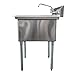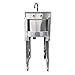 The sink is made with high-quality 18 gauge, type 304 stainless steel. Rust and corrosion resistant. Galvanized Legs with adjustable plastic bullet feet. Includes 1 drain basket. NSF Certified for Food Service Application.