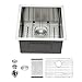 ▶FUNCTIONAL ACCESSORIES: This 23 inch undermount kitchen sink comes with stainless steel bottom grid , rollup rack, stainless steel drain assembly with decorative caps. Template paper, clips and instruction also are included.