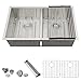 📏The stainless steel kitchen sink has all-in-one accessories, functional ledge workstation, the package includes 1 stainless steel Bottom Grid, 1 Drain Assembly, 1 Roller Rack, 1 Sapele Red Wood Cutting Board, 1 Stainless colander, 1 Template and instruction.