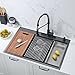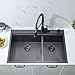 Kitchen Sink with Cup Washer: The black cup washer is made of high-quality ABS material, and the main body is made of copper. The cup mouth diameter ≤ 4inch can be used. The powerful water flow of the glass cup washer can thoroughly rinse the residue in a few seconds, making your cup as bright as new PYGHWNXH