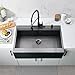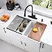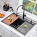 Workstation Farmhouse Sink: Black stainless steel farmhouse kitchen sink has built-in ledges on the front and back provide a track,The track provides us with more space to use. It can be switched to a cutting board or a separate sink mode. If you don't want to wash the dishes, Cutting Board covers the entire sink also cover your dirty dishes.