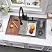 Workstation Design:This black stainless steel sink with ledge which overhanging lips on the front and back as a track for sliding the built-in accessories convert your sink to a workspace. The track provides you with more space to use. It can be switched to a cutting board or a separate sink mode